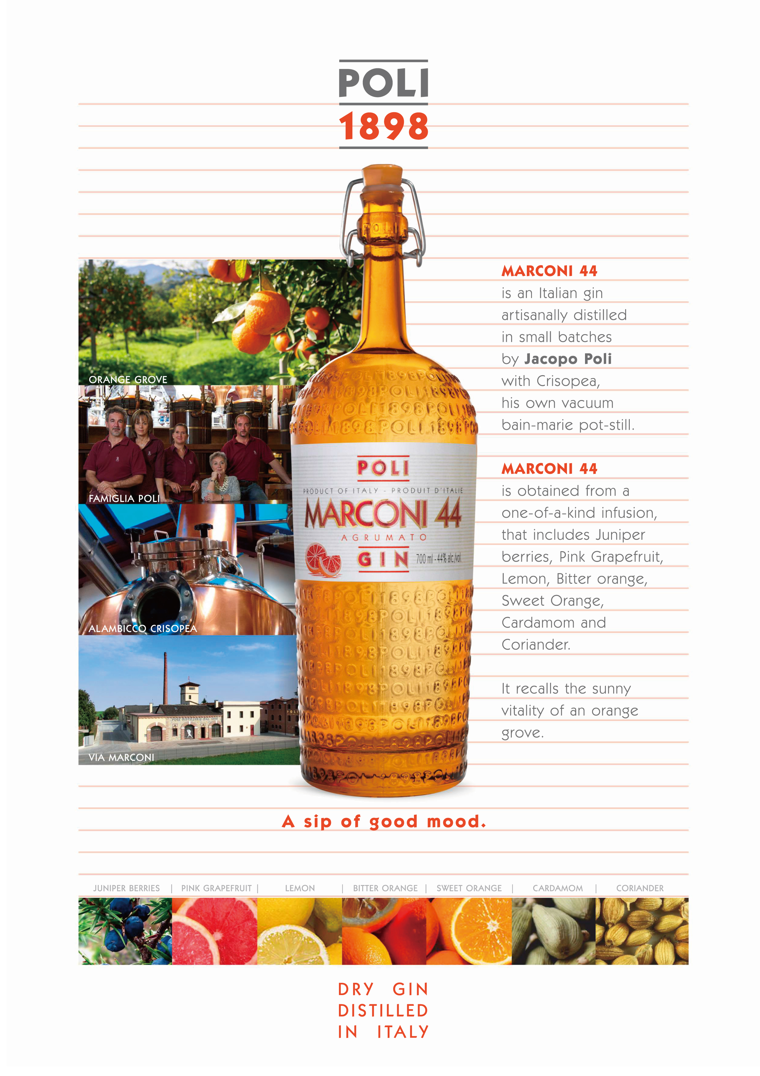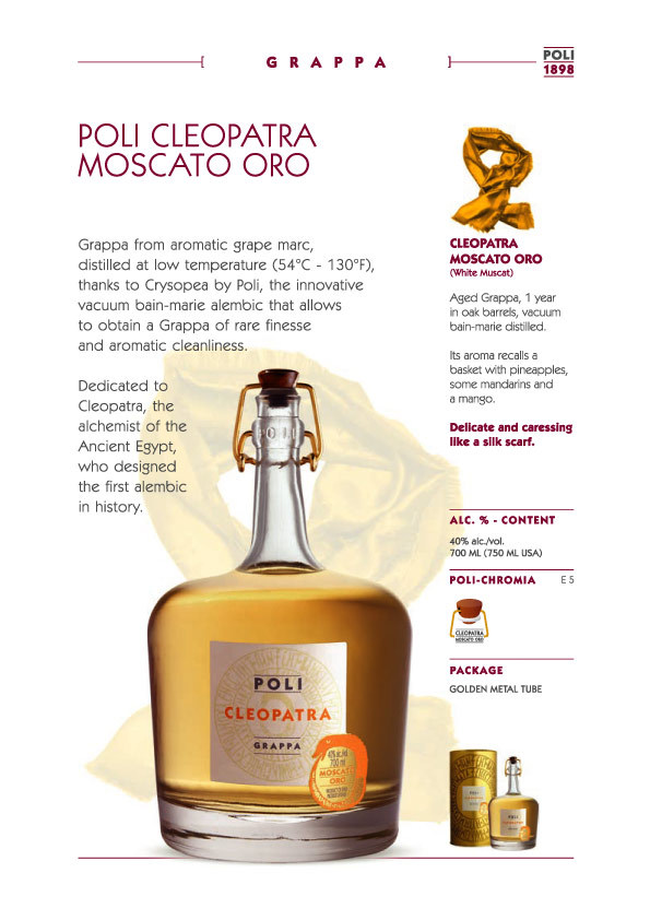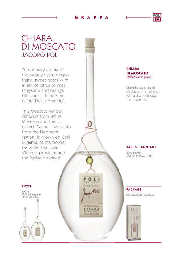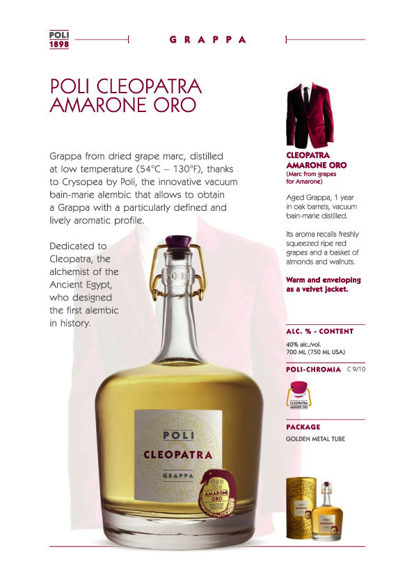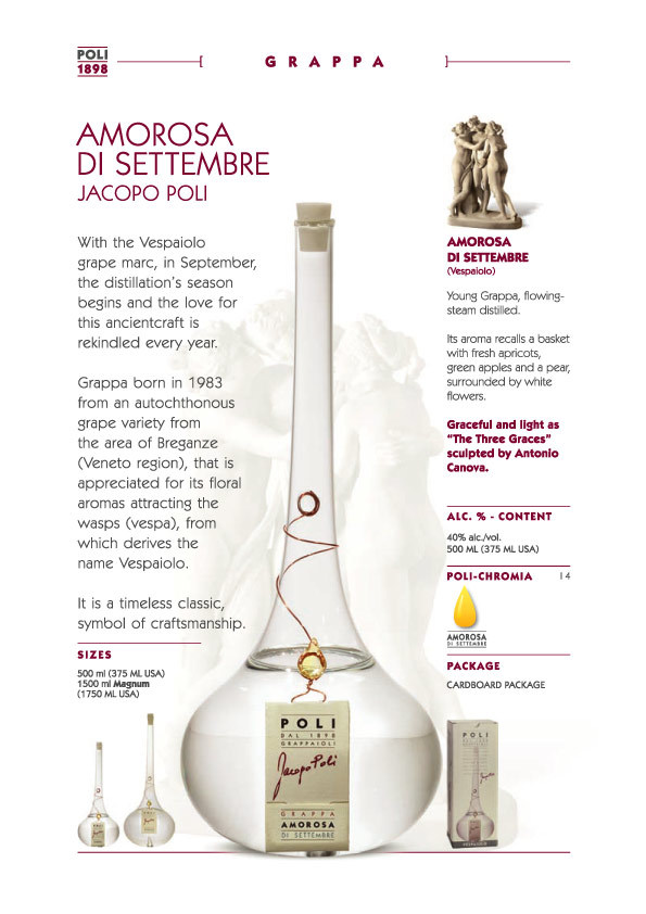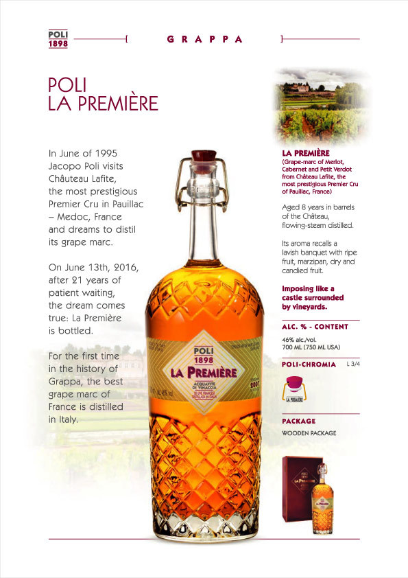 Poli 的蒸餾廠位於義大利威尼托大區山麓下的斯基亞翁(Schiavon)地區,鄰近 Bassano del Grappa,為義大利葡萄酒重要的產地之一,義大利人每天都得小酌的餐後酒 Grappa 的習性也是源自 Bassanodel Grappa。