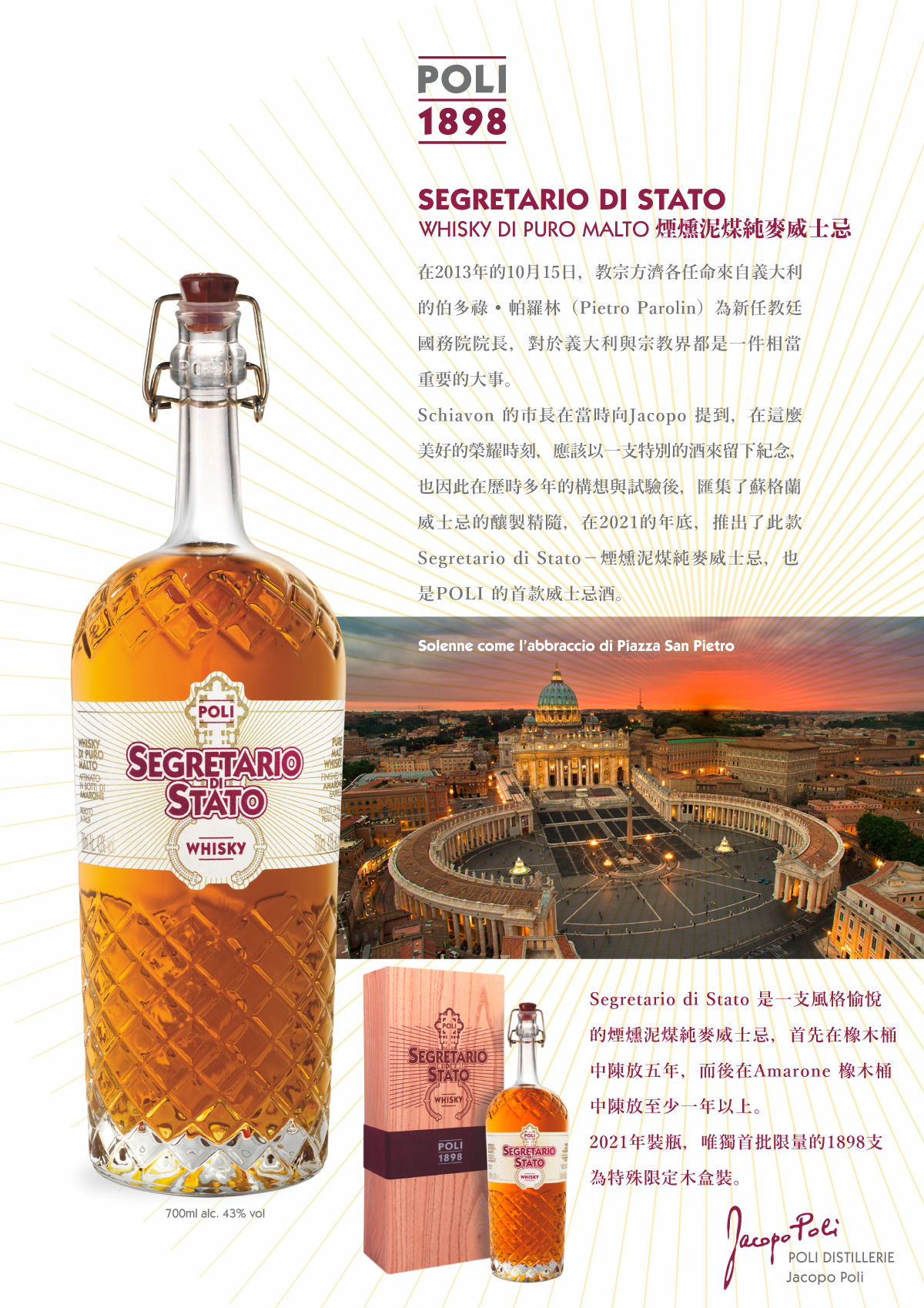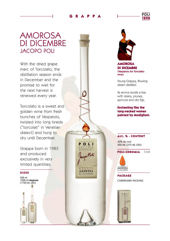 Poli distillerie 1898 保有百年的蒸餾技法以及對 Grappa 的熱愛,加上 Bassano del Grappa 的地緣關係,讓 Poli 可說是義大利 Grappa 的指標性品牌!