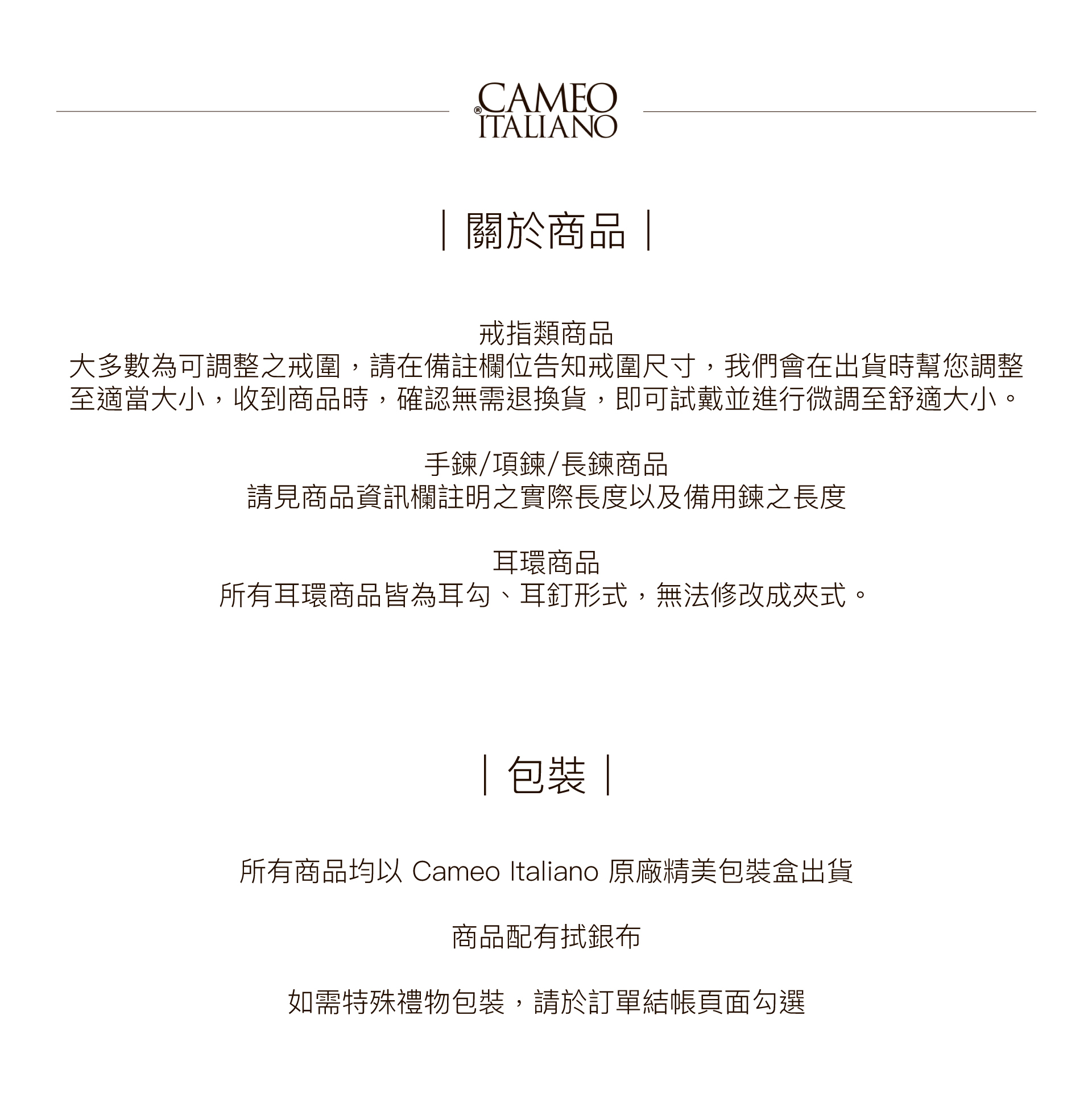 尺寸 / 貝雕Cameo 直徑8 mm、鏈長15cm + 備用鍊3cm