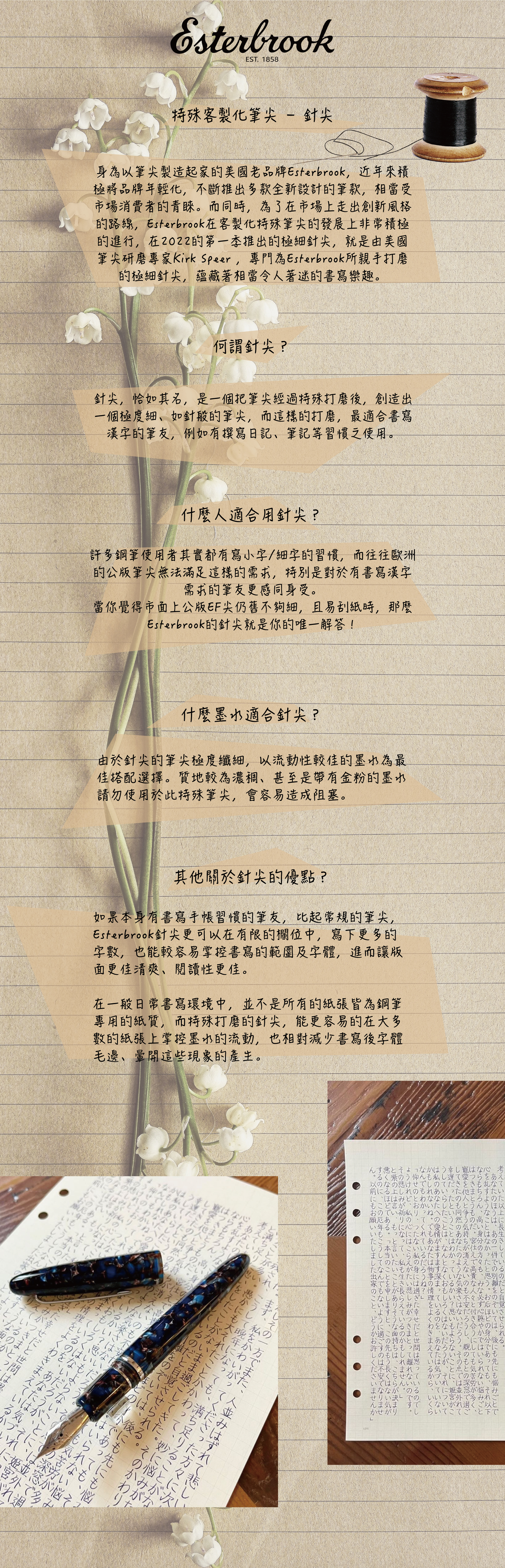 Esterbrook 特殊訂製針尖(Needlepoint) 原筆款售價+$1800