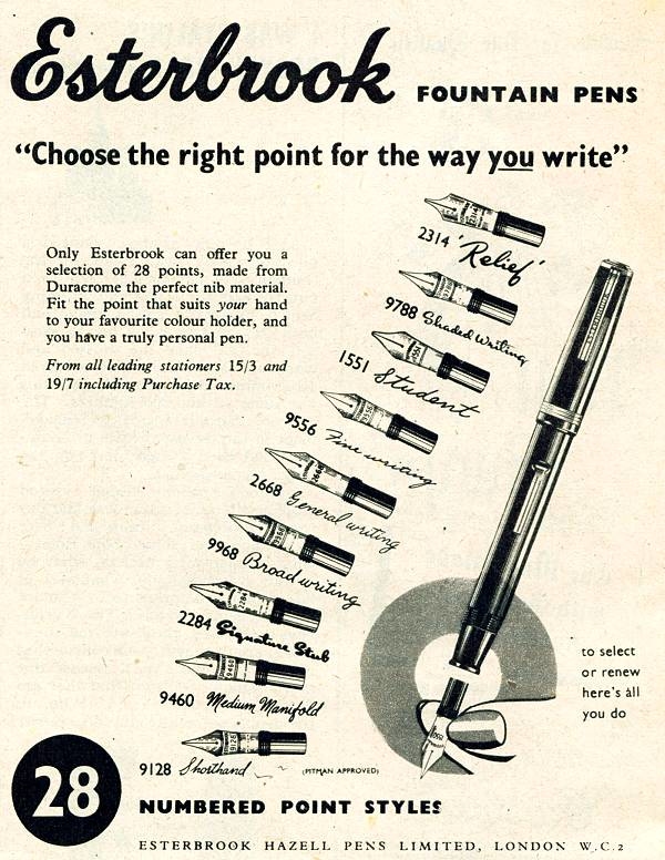 1933年,Esterbrook開始生產塑膠筆桿的鋼筆,採用特殊的筆尖與筆舌機制,讓使用者可以依照書寫喜好,隨時輕易的更換自己喜愛的筆觸,而原先即為最大筆尖製造公司的Esterbrook,更善用自己的優勢提供超過400種不同樣式的筆尖可供選購。如此特殊的換尖系統使得Esterbrook在眾多競爭者中脫穎而出,也為美國書寫的文化建立了穩固的基礎。