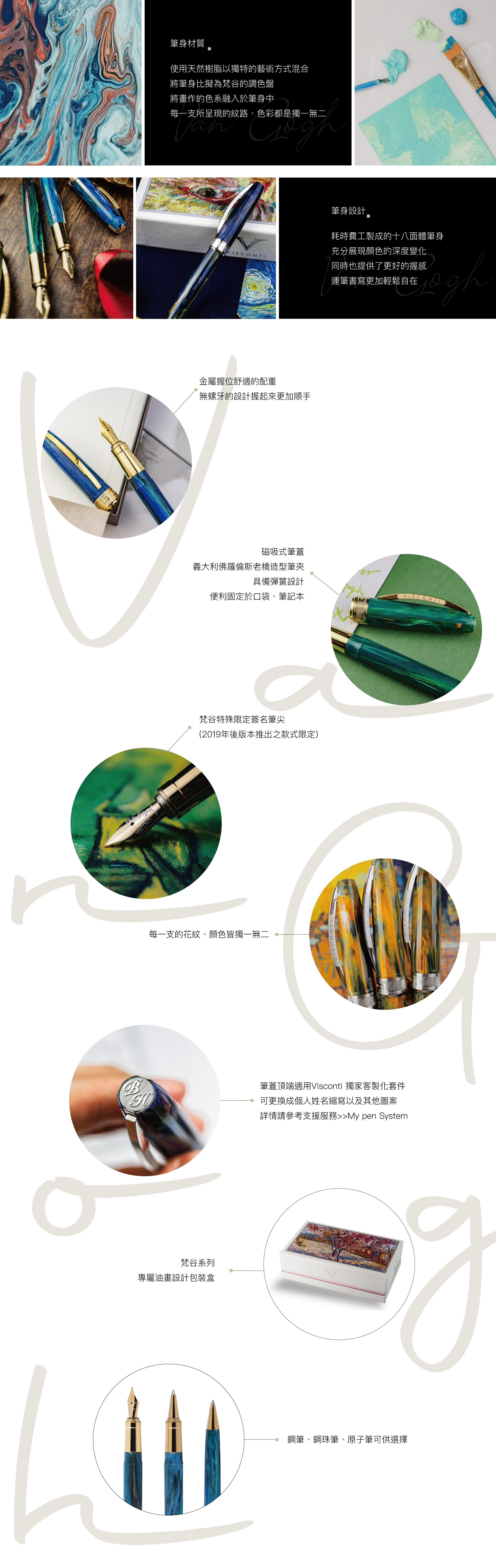 義大利佛羅倫斯筆廠Visconti 所推出的經典筆款,以著名的荷蘭後印象派畫家為題材所打造,在梵谷一生約2100幅的畫作中,挑選出世界聞名的作品並為其打造專屬的筆款。