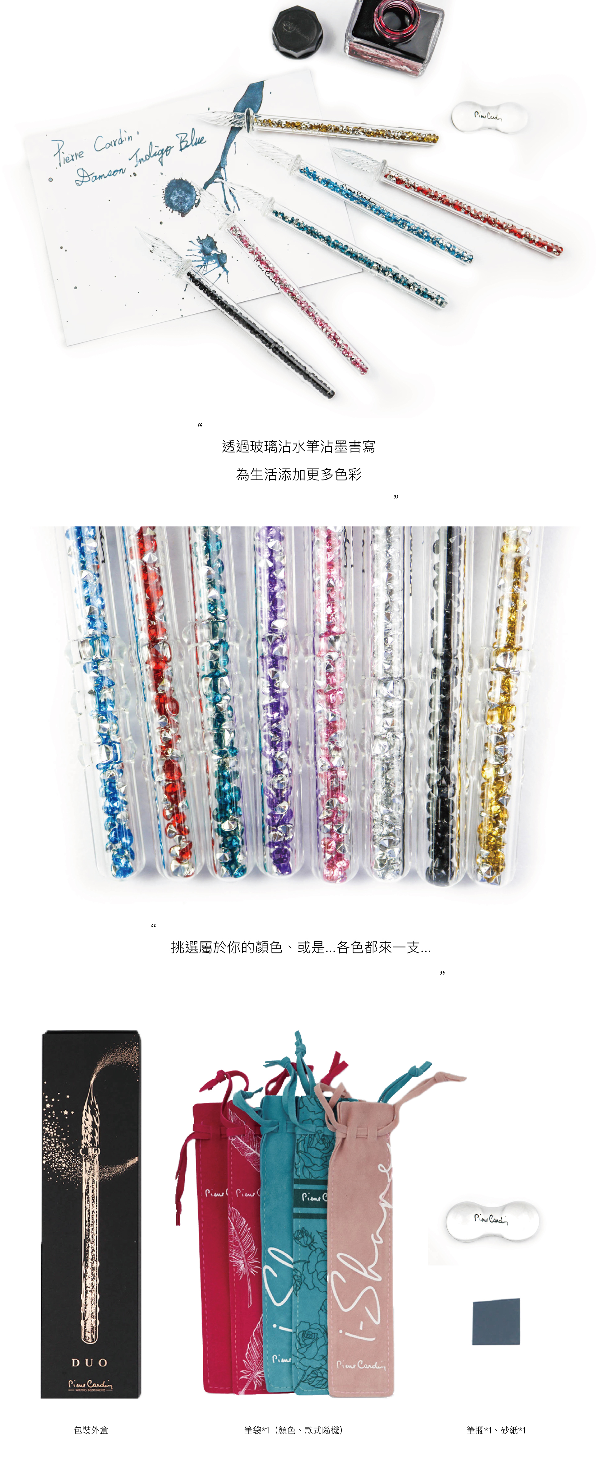 ■ 皮爾卡登 DUO DIP 玻璃筆+筆擱 - 粉