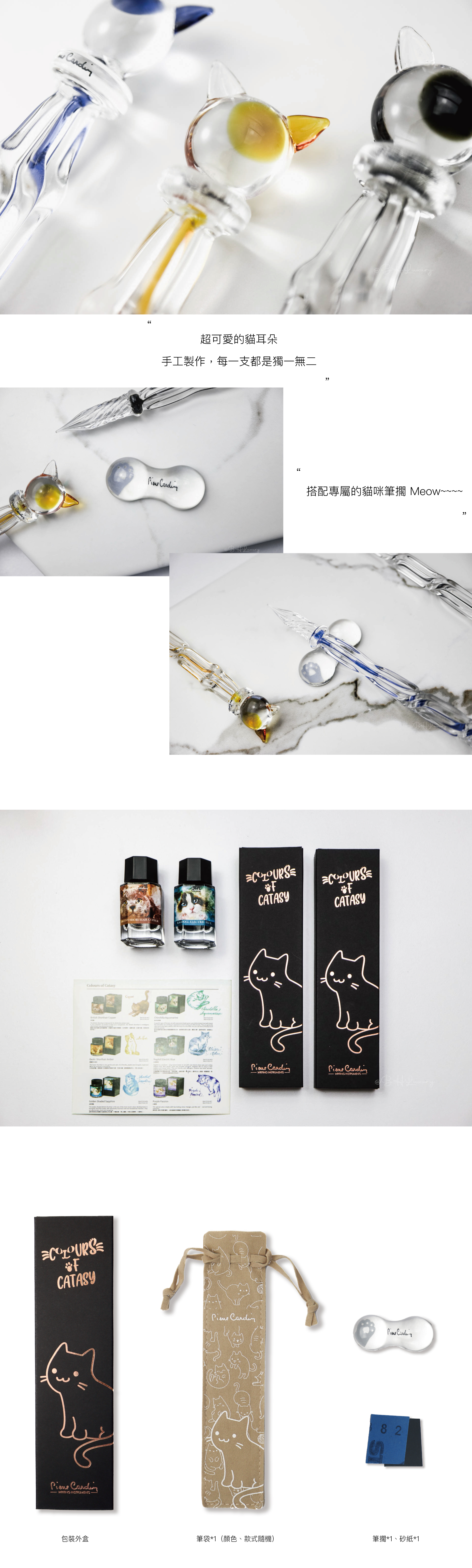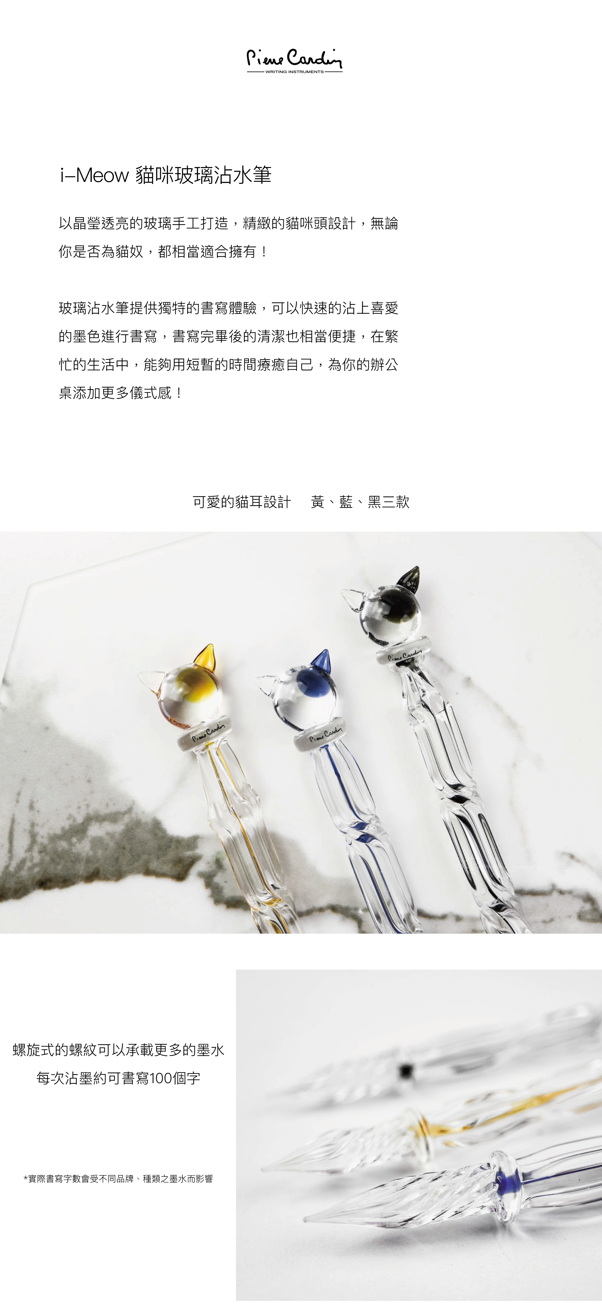 ■ 皮爾卡登 貓咪玻璃筆+筆擱 - 藍